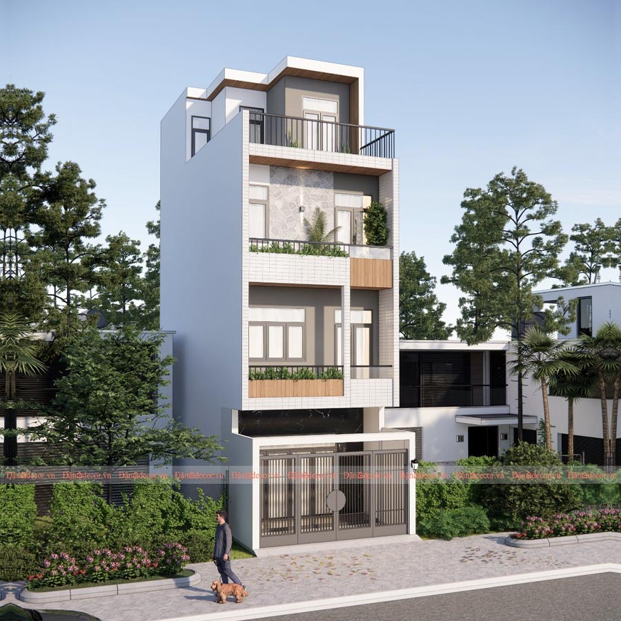 MẪU 4: THIẾT KẾ NHÀ PHỐ 1 TRỆT 2 LẦU 1 TUM