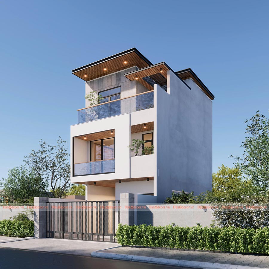 Mẫu nhà phố 3 tầng hiện đại thanh lịch, tối ưu ánh sáng và thông gió tự nhiên. Thiết kế thi công trọn gói bởi Đặng Decor, phù hợp nhà phố đô thị hiện nay.